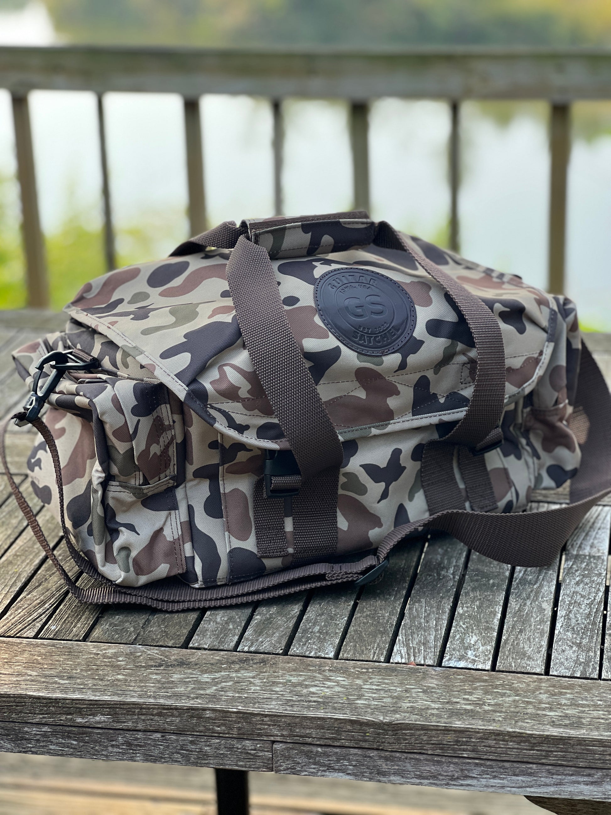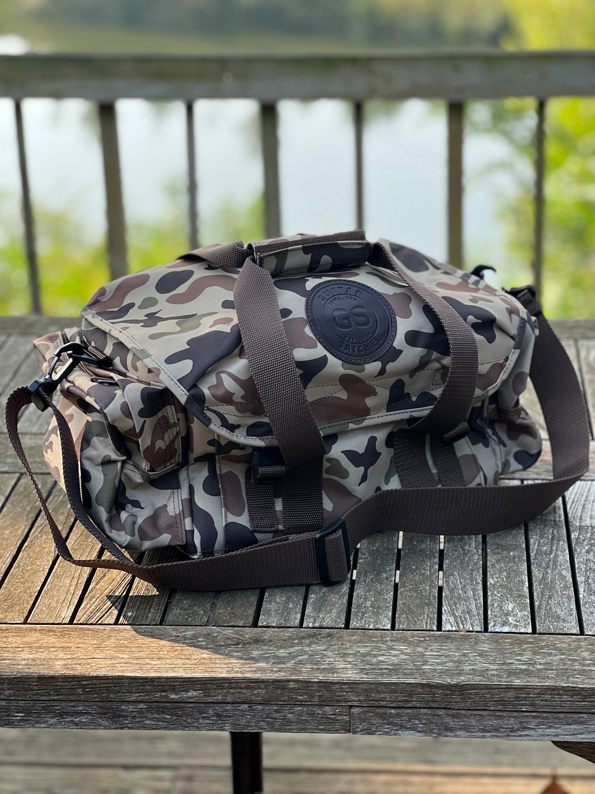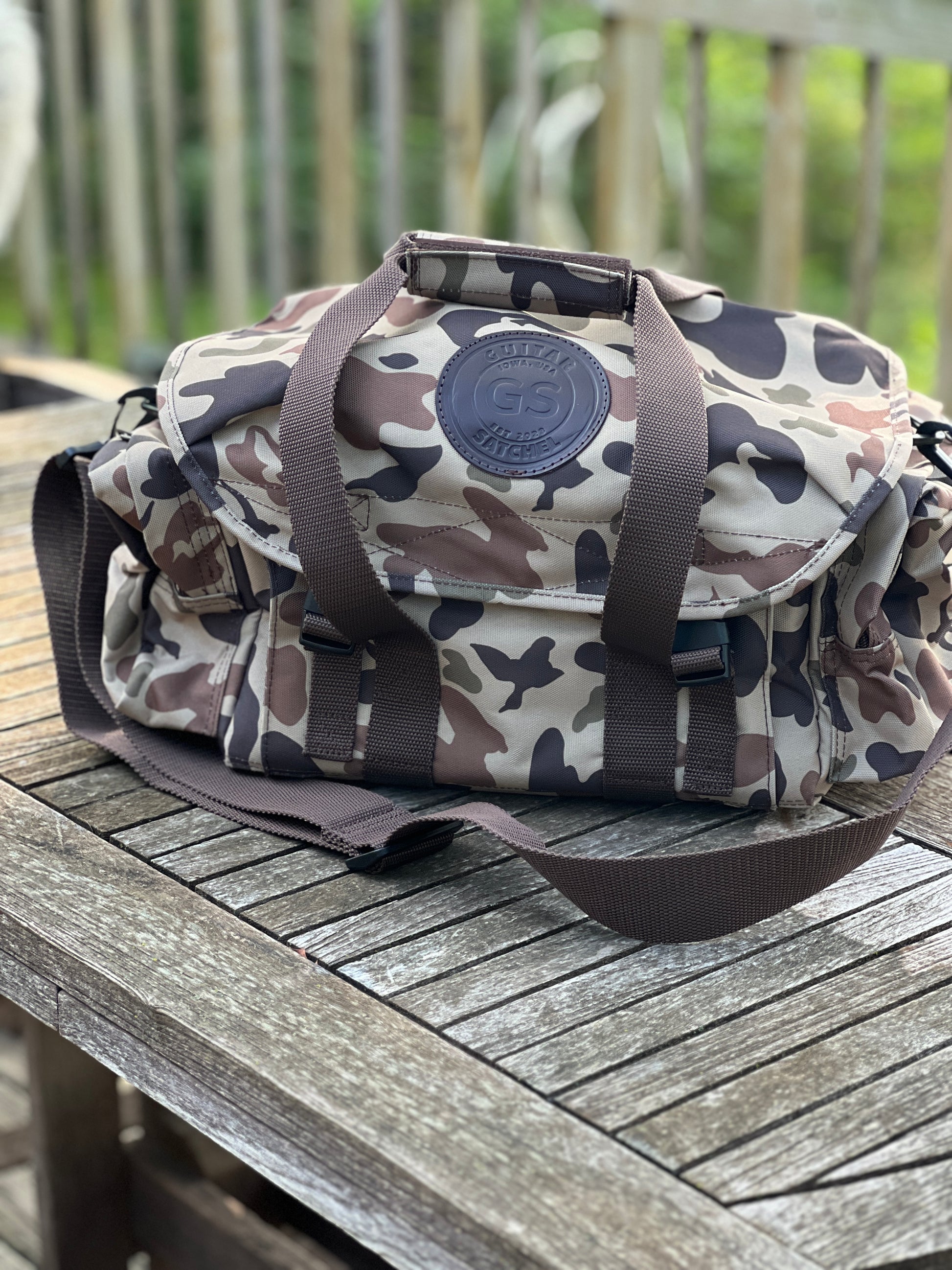This Limited Edition Guitar Satchel Bus Bag in Vintage Camo is made to complement your Guitar Satchel Soft Sided Gig Bag. This vintage camo design would be at home in your grandfather's duck blind.