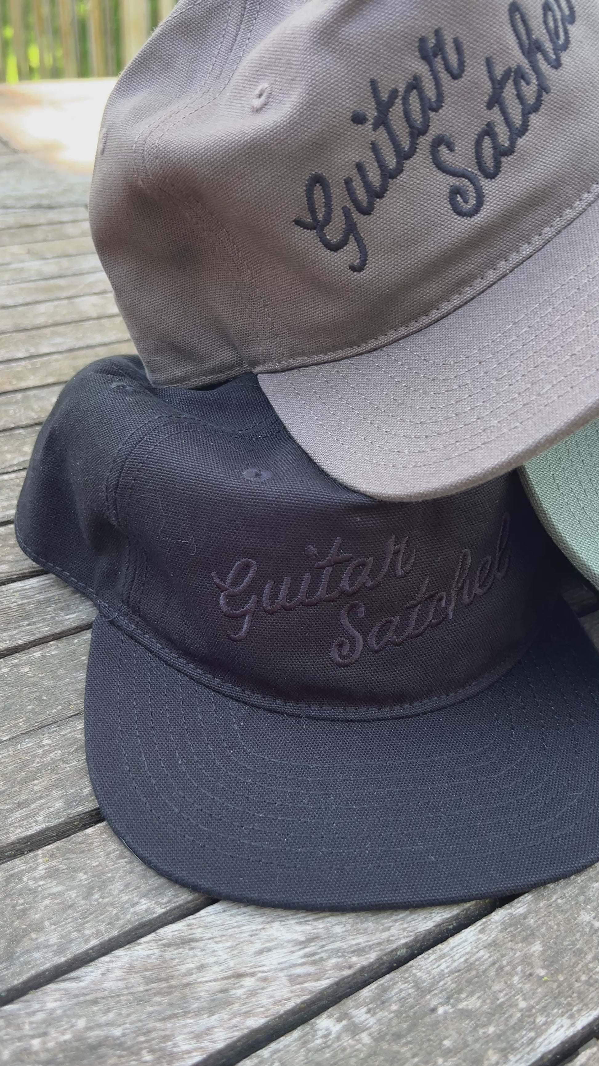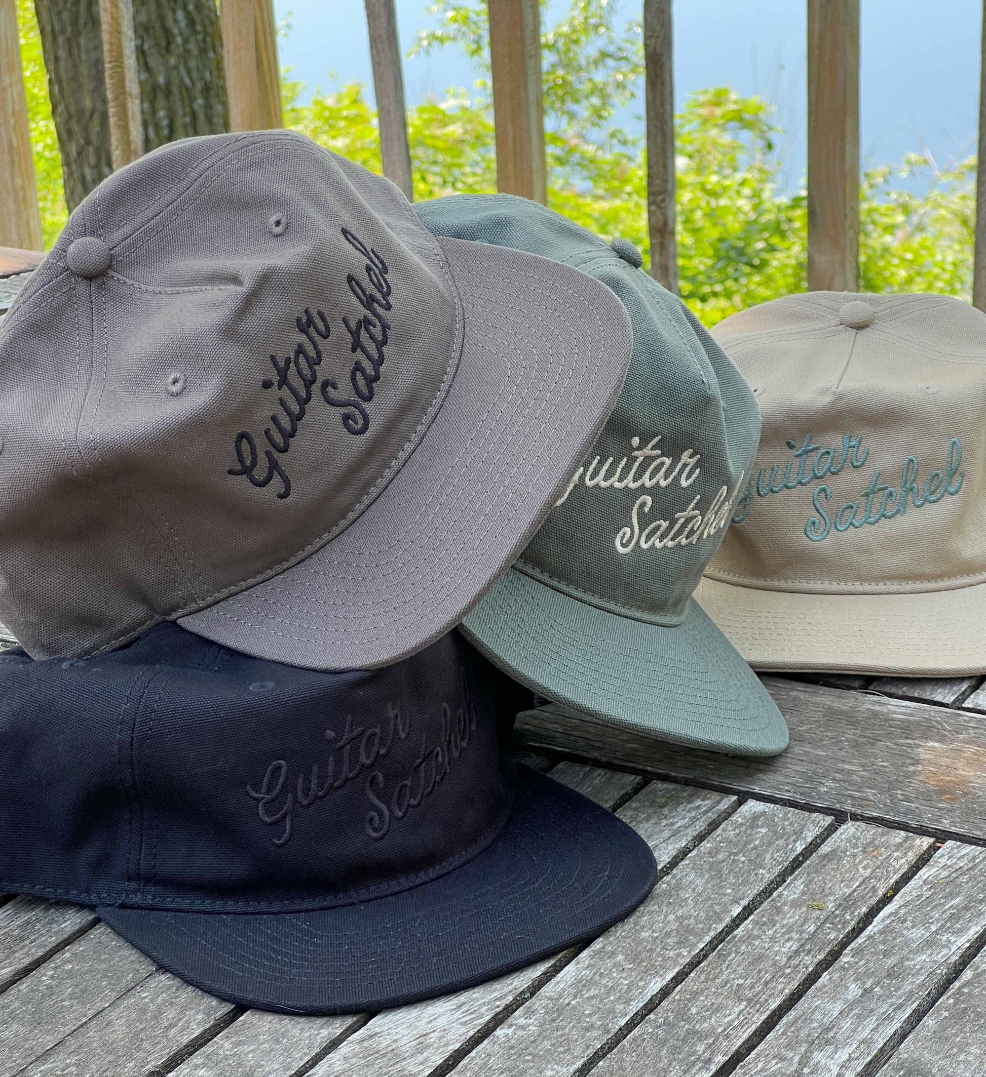 New for summer 2025. Embroidered summer weight unstructured Guitar Satchel snapback caps. I wear one everyday. You probably will wear yours everyday too.