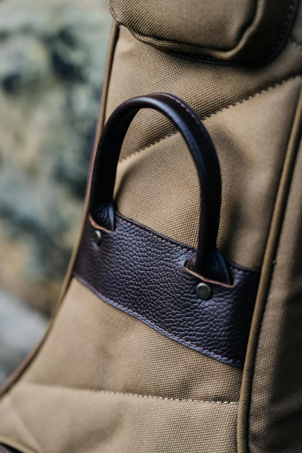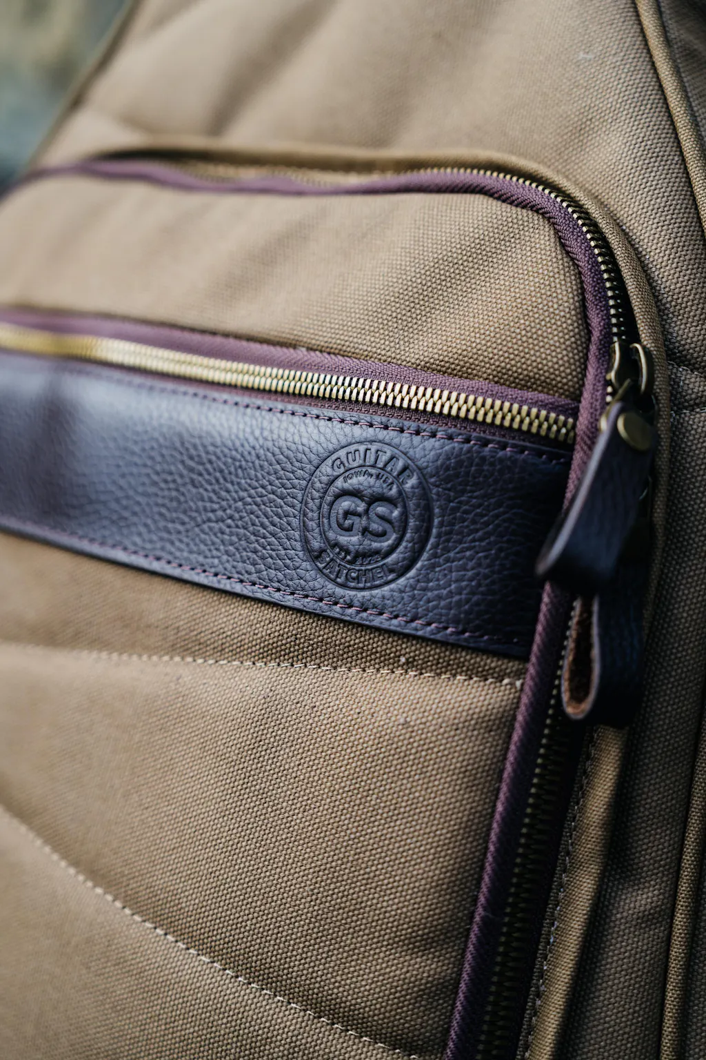 The Guitar Satchel case is made using the best materials and quality craftsmanship of a 120 year old manufacturer based in Iowa. It is made with a heavy dry waxed cotton duck material that is naturally water repellent and durable. It has a quilted cotton felt interior and feature high quality leather and brass zippers. (This manufacturer originally supplied the zippers to the US Army during World War I)