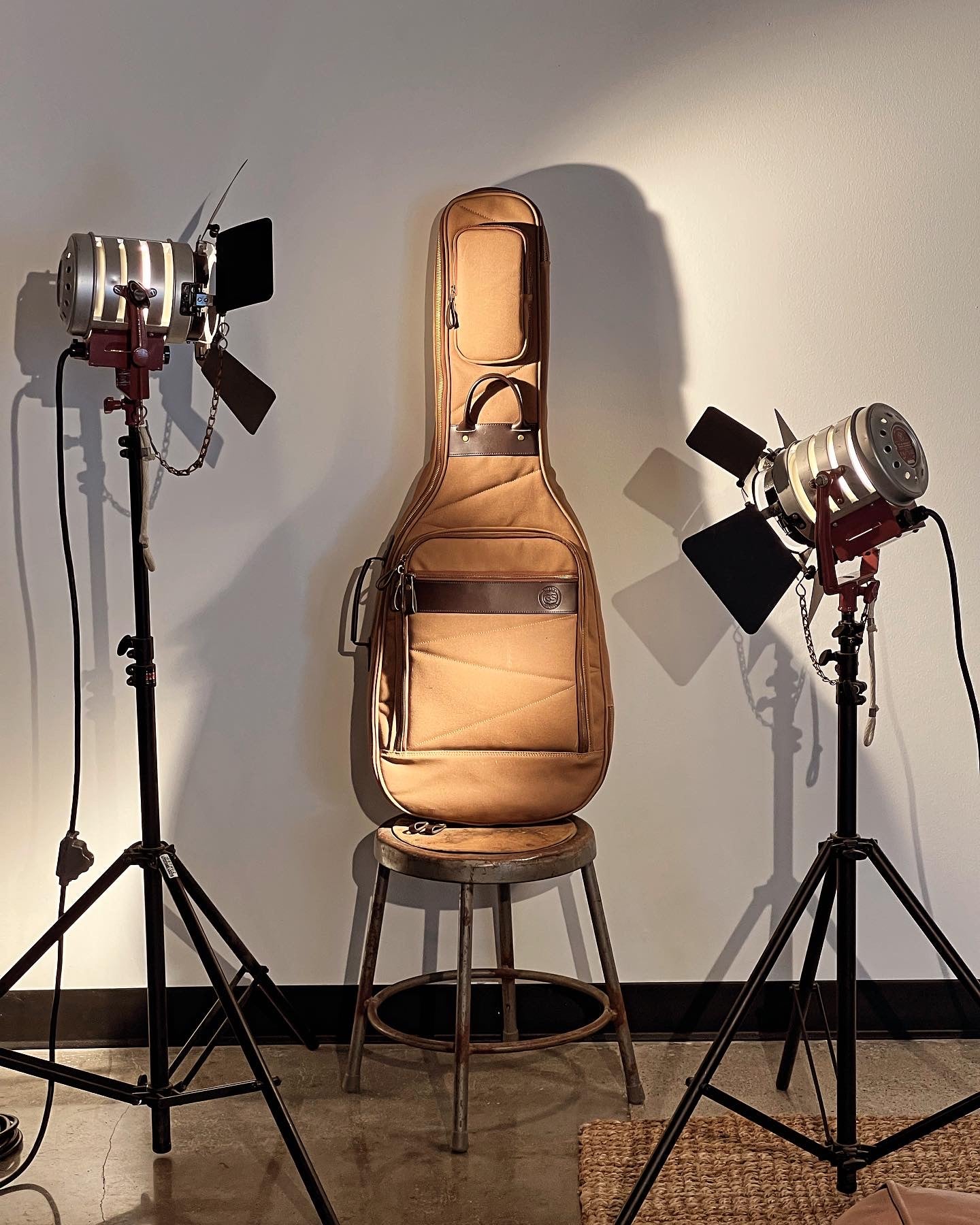#acousticguitar #acoustic #guitar #heritage #bespoke #waxedcanvas #brass #quilted #felt #leather #carryon #backpack #tickettoadventure #travel #softcase