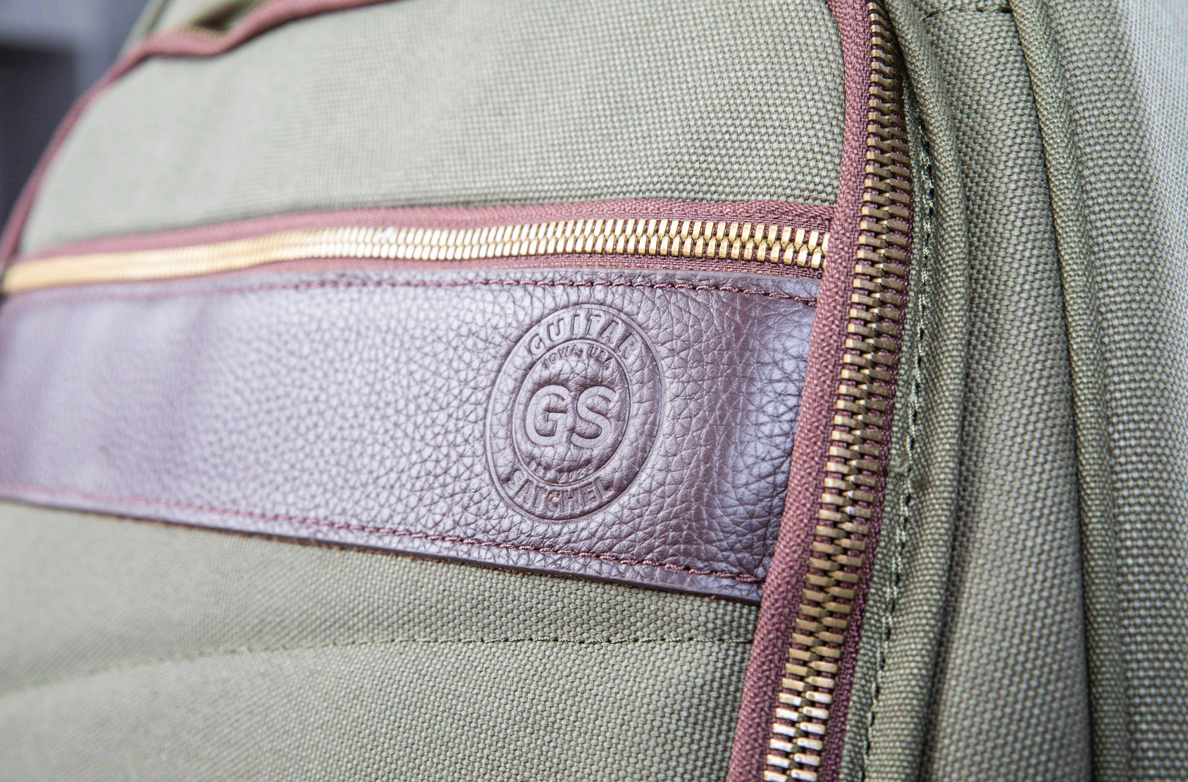 The Guitar Satchel case is made using the best materials and quality craftsmanship of a 120 year old manufacturer based in Iowa. It is made with a heavy dry waxed cotton duck material that is naturally water repellent and durable. It has a quilted cotton felt interior and feature high quality leather and brass zippers. (This manufacturer originally supplied the zippers to the US Army during World War I)