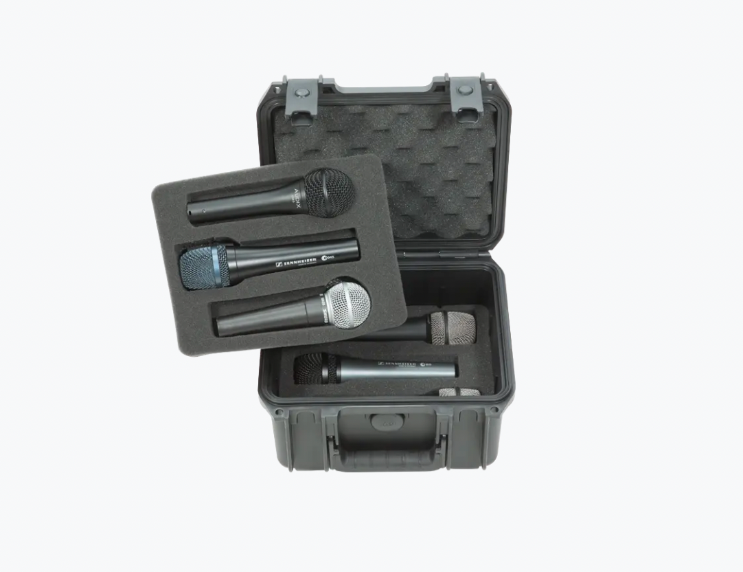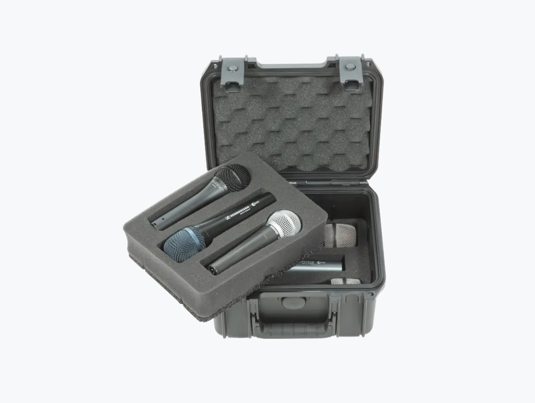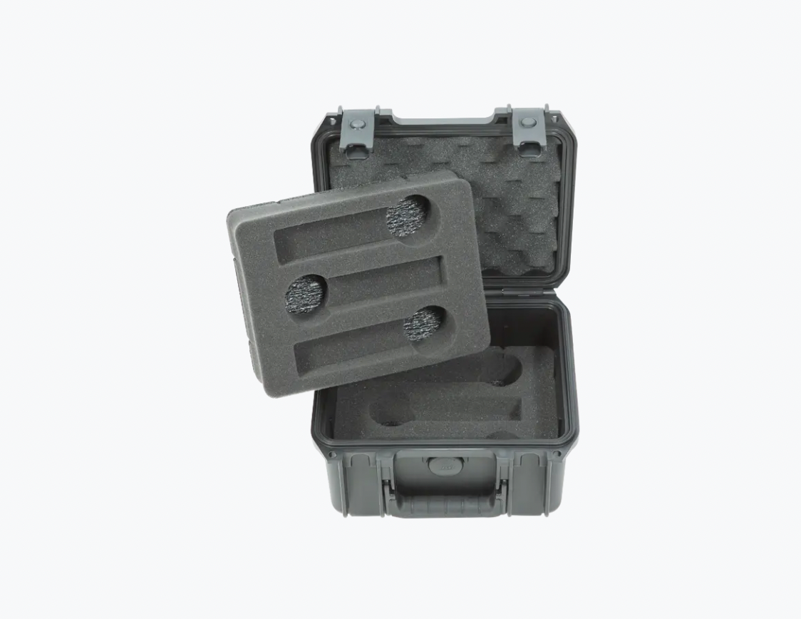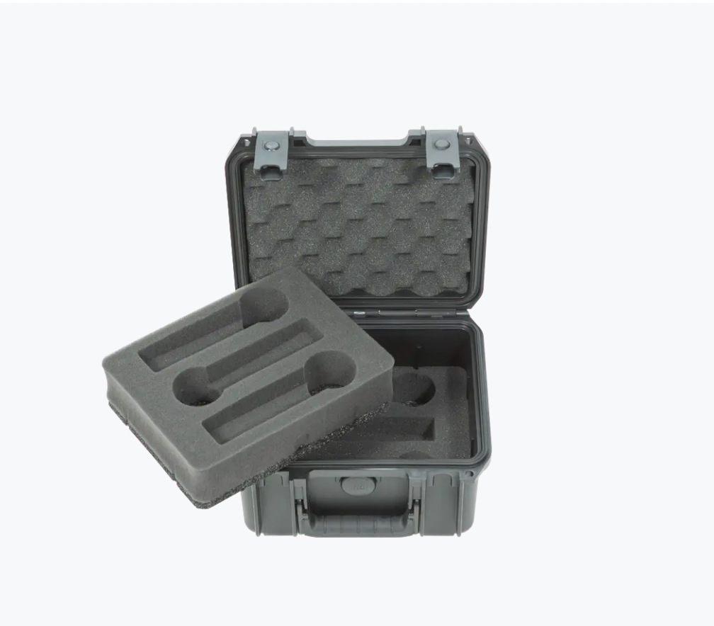 The SKB - iSeries 0907-6 Case waterproof cases are the perfect solution for storing and transporting your delicate electronics, A/V equipment, microphones, mixers, cables, computers or percussion and music accessories. This case's internal dimensions are 9.5" x 7.25" x 6". This case is available in 3 options on the interior: Empty, with foam with cutouts for 6 handheld microphones, or with a ThinkTANK photo insert.