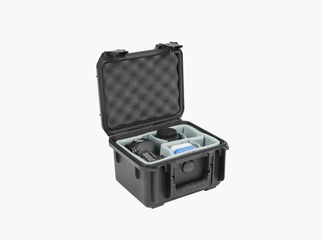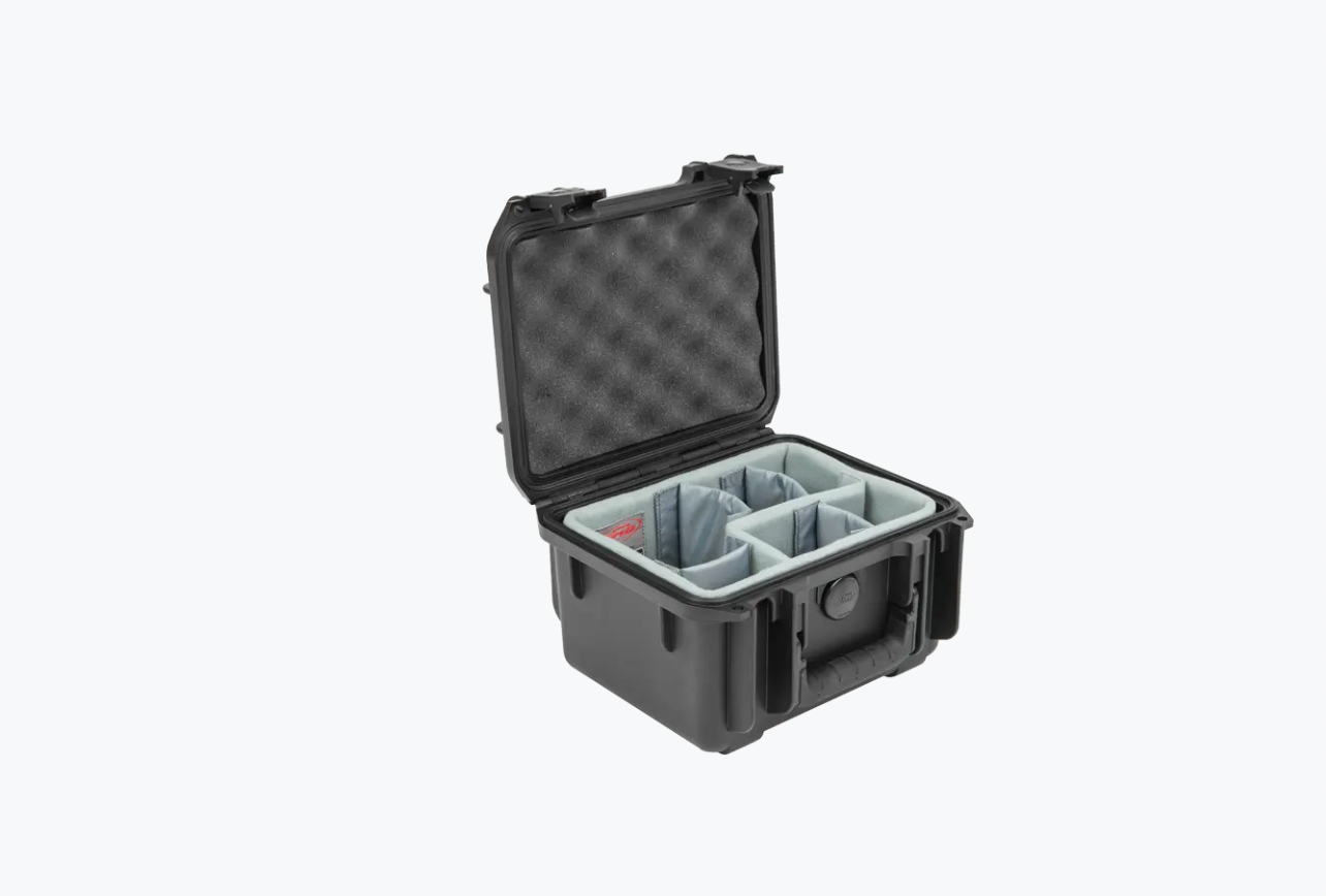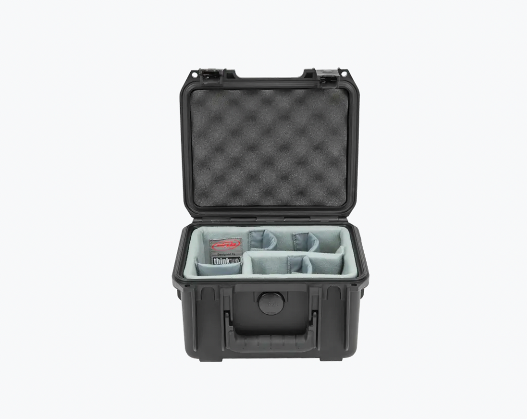 The SKB - iSeries 0907-6 Case waterproof cases are the perfect solution for storing and transporting your delicate electronics, A/V equipment, microphones, mixers, cables, computers or percussion and music accessories. This case's internal dimensions are 9.5" x 7.25" x 6". This case is available in 3 options on the interior: Empty, with foam with cutouts for 6 handheld microphones, or with a ThinkTANK photo insert.